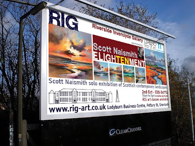 Here’s the proposed billboard to advertise my upcoming show at the Riverside Inverclyde Gallery, Greenock on 2nd October 2010. Small changes to colour and correction to spelling (of enlightenment!) to happen before in gets printed and stuck up. More photos to come once it’s up.